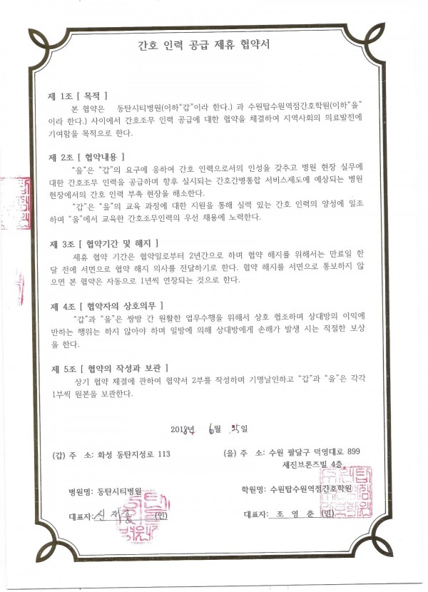 동탄시티병원 > 간호인력공급협약병원