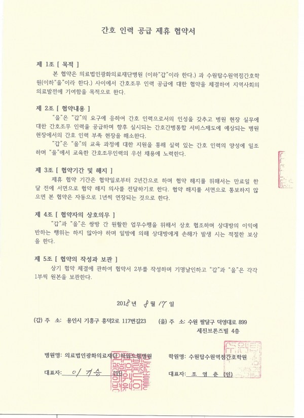 광화의료재단병원 > 간호인력공급협약병원