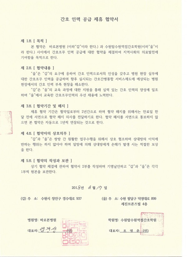 바로본병원 > 간호인력공급협약병원