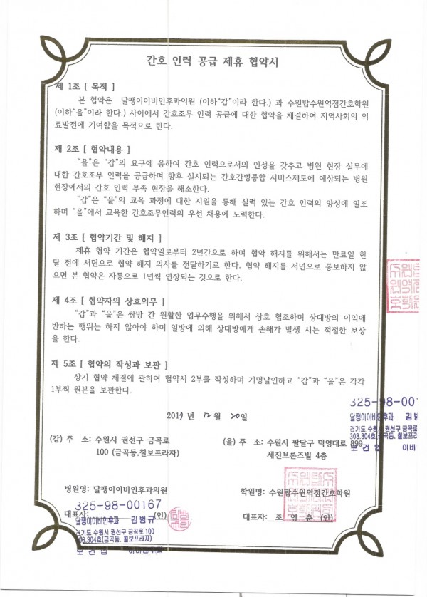 달팽이이비인후과의원 > 간호인력공급협약병원