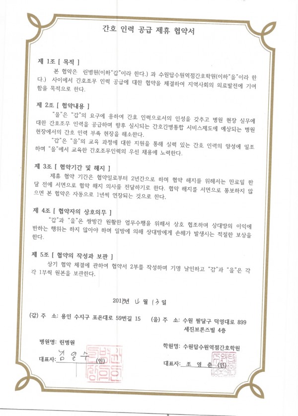 린병원 > 간호인력공급협약병원