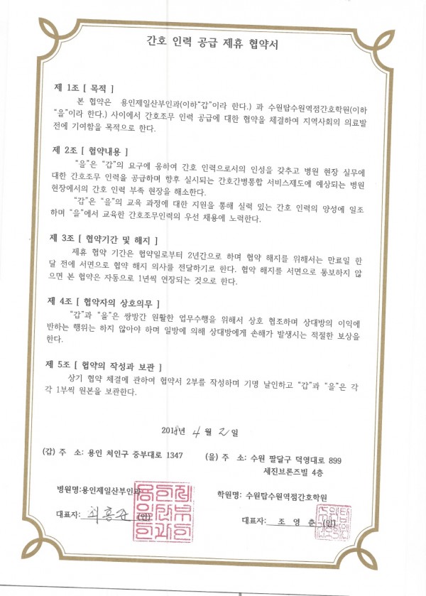 용인제일산부인과 > 간호인력공급협약병원