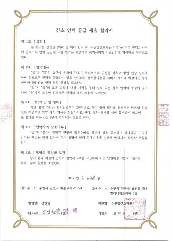 신병원 > 간호인력공급협약병원