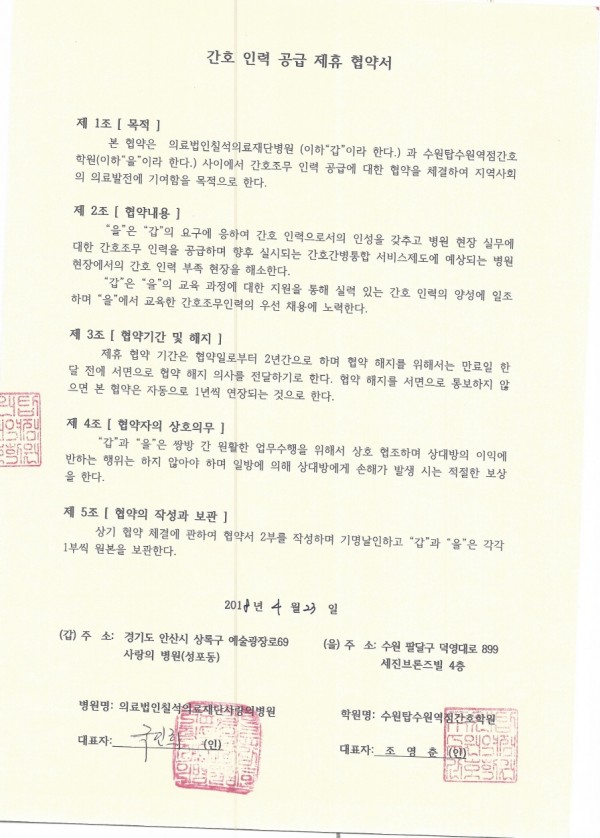 의료법인칠석의료재단사랑의병원 > 간호인력공급협약병원