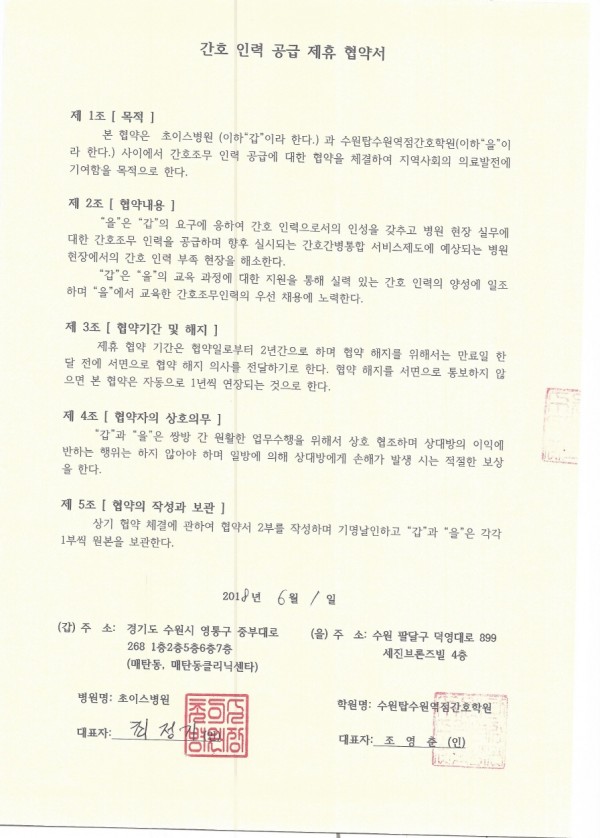초이스병원 > 간호인력공급협약병원