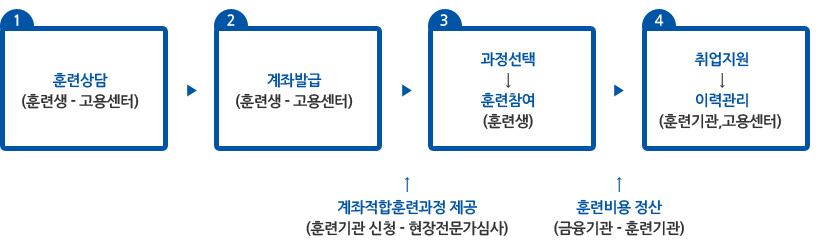 구직자 (신규실업자, 전직실업자)에게 일정한 금액을 지원, 그 범위 이내에서 직업능력개발훈련에 참여할 수 있도록 하고, 훈련이력 등을 개인별로 통합관리하는 제도.