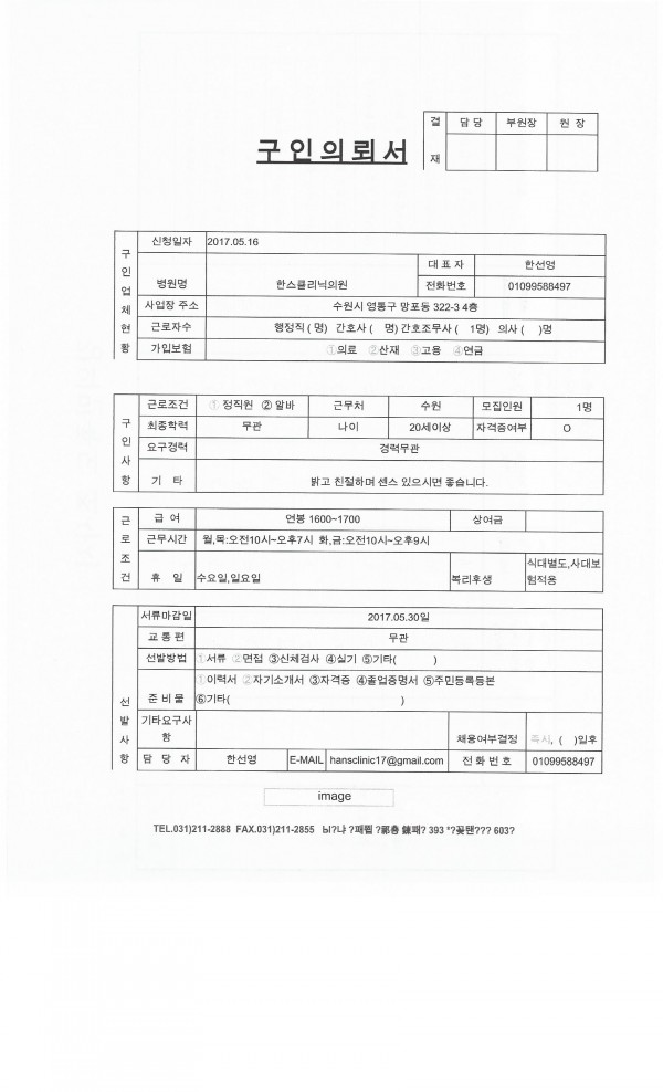 | 제목 | 한스클리닉의원 채용공고입니다. | 작성일 | 17-05-19 11:17 |
