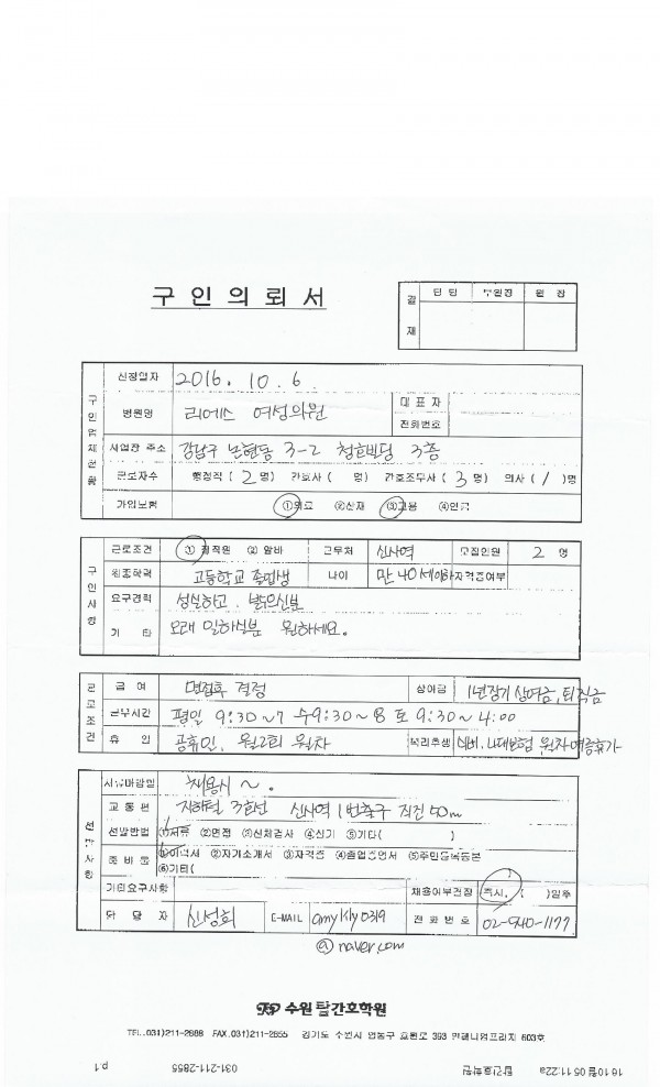- 이전글[분당 서현]한음한의원 분당점에서 간호조무사 자격증 소지하신 데스크 선생님을 모십니다.(마감) 16.10.10