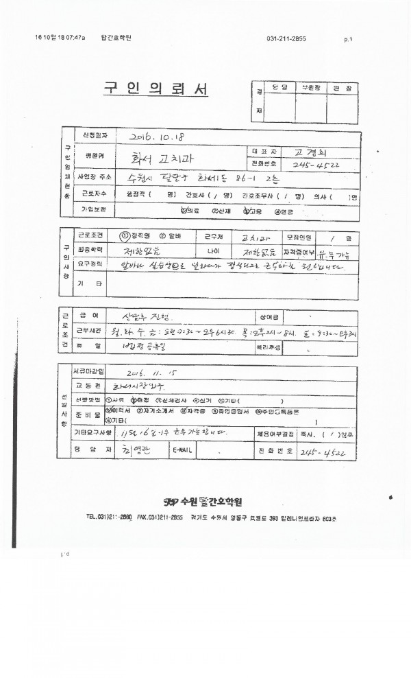 - 다음글온누리 한의원 채용공고입니다. 16.10.11