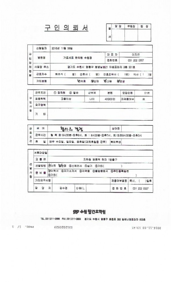 - 다음글[분당 서현]주 4일, 한음한의원 분당점에서 간호조무사 자격증 소지하신 데스크 선생님을 모십니다. 16.11.01