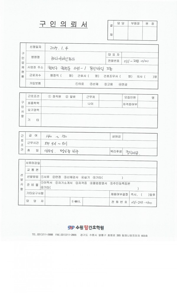 | 제목 | 하나이비인후과 채용공고입니다. | 작성일 | 17-01-04 16:58 |