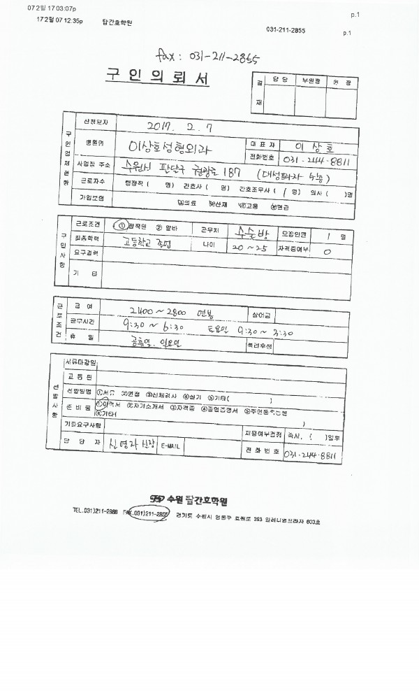 | 제목 | 이상호성형외과 채용공고입니다. | 작성일 | 17-02-07 15:40 |