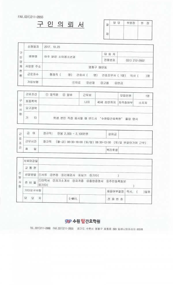 - 다음글우보한의원 수원점 채용공고입니다. 17.10.17