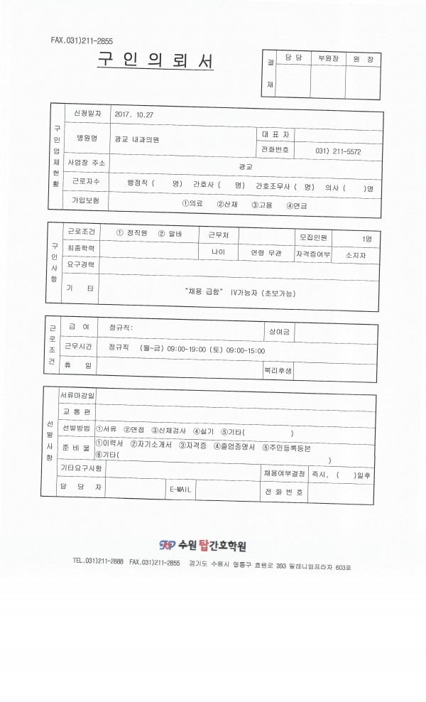| 제목 | 광교내과의원 채용공고입니다 | 작성일 | 17-10-27 14:17 |