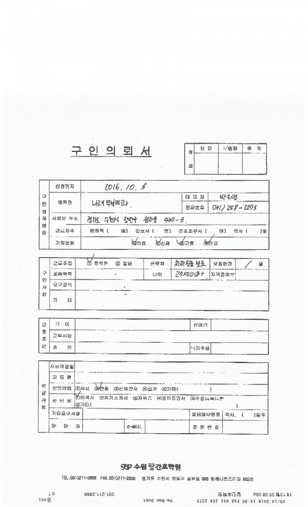- 다음글명인치과의원 채용공고입니다. 16.09.29